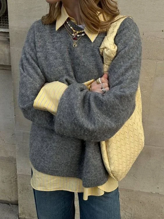 One of my favorite ways to wear an Oxford is underneath other pieces of clothing. Last fall, I added one underneath a sweatshirt and it instantly elevated the fit and made it look less like loungewear. A few other staple ways to do this is under a vest or classic crew neck sweater!