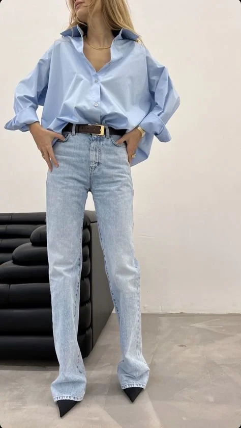 Denim has been all over the place the last few years. In 2025, we expect to see less of baggy, oversized jeans, and more women starting to own & wear more classic, straight cut denim. Plus- this looks the best on everyone.